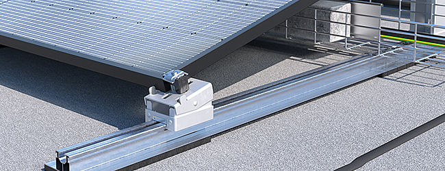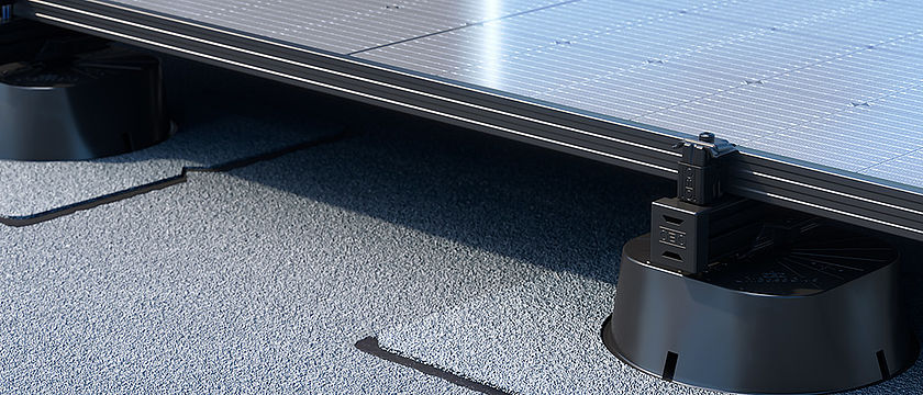 På platta tak säkerställer Magic PV Flat Pro-systemet inte bara skruv- och verktygsfri installation, utan imponerar även med flexibla systemkomponenter och UniBase ballastsystem för variabel viktning av hela systemet.