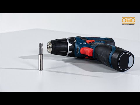 The pre-tensioner bit for OBO earthing pipe clamps provides a noticeable time saving during mounting. A unique product on the market, the pre-tensioner fits in all standard bit holders (1/4 inch, 6.3 mm) of all makes of battery-powered screwdrivers, making additional tensioning and machining unnecessary. The following video clearly shows just how simple that is: https://youtu.be/oI1lzFBamQ4