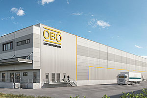 Anyone driving through the Menden-Hüingsen can hardly miss it: OBO is building a new logistics centre here right next to the metal competence centre on an area the size of four soccer pitches and is thus investing 50 million euros in the Menden site. With the acquisition of the site, OBO has fulfilled a long-cherished wish. As the company continues to grow, an expansion of the logistics areas and the metal competence centre had been planned for some time. “Once again, it has proved worthwhile for us to invest anti-cyclically. The new logistics centre with a total investment volume of 50 million euros, with state-of-the-art technology and connected production is taking shape more and more. After an impressively short construction period of just 6 months, we expect it to be ready for occupancy by the end of June,” says Ulrich Bettermann, Chairman of the Board of Directors of the OBO Bettermann Group. “The close proximity to our metal competence centre will ensure short transport routes, which will also benefit the environment. In any case, the new logistics hall will be sustainable and future-oriented: A large part of the power supply will be provided by solar power, which we obtain from our company's own photovoltaic system, which will also be extended once again on the new building. In the logistics centre itself, driverless electric transport systems will roll through the halls.”