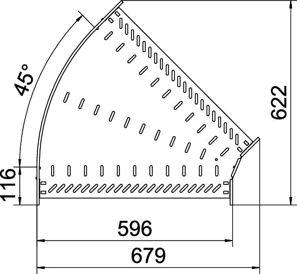 Produktbeskrivning45° böj för framställning av en horisontell avgrening, formdel för kabelrännor med sidhöjd 85 mm som snäpps eller skruvas fast. Skruvfri montering med dubbelklämmor eller skruvförband med skruvar med platt huvud FRS och kombimuttrar M6. Kan användas inomhus och utomhus. Fästmaterial måste beställas separat.