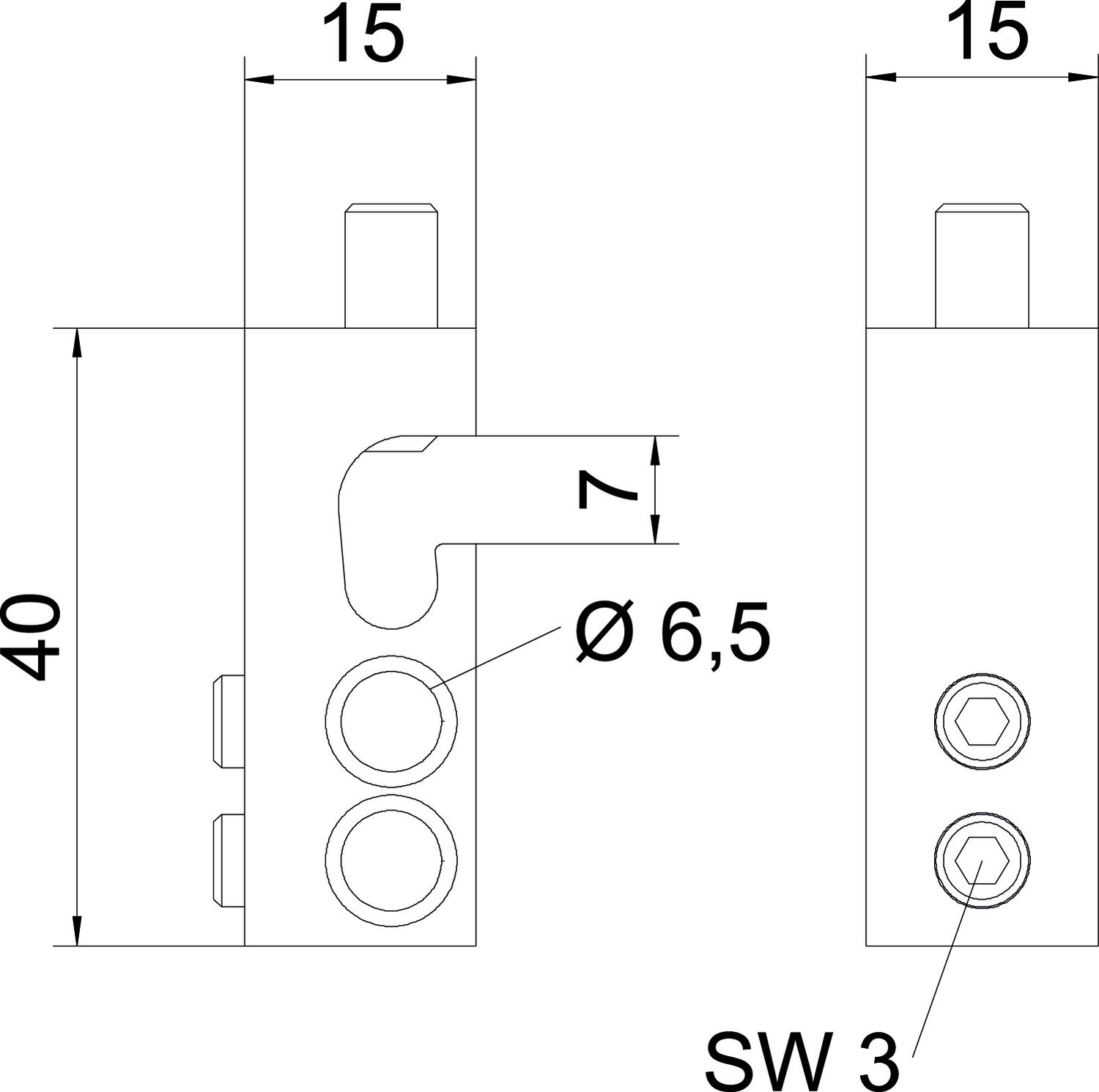 Bredd 15 mm Dimension 25mm² Färg Mässing Höjd 40 mm Lämpad för Rundledare Längd 15 mm Material Mässing Mått B 7 mm Mått D 6,5 mm Mått H 40 mm Tvärsnitt 25 mm² Utförande anslutningsklämma för ledare Enkel - Alla typer