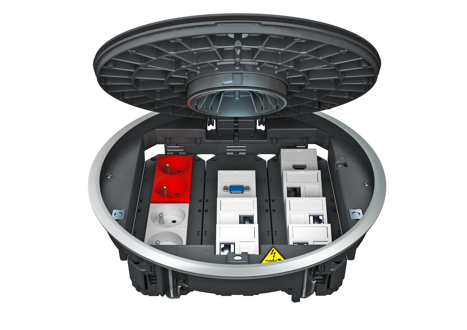 Apparatinsats med tub för golv som våtstädas, 3-plans, för installation av monteringshållare MT9. 3 täckplattor i format APMT5 kan installeras.