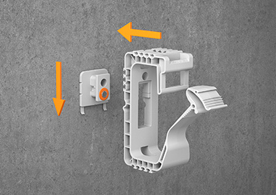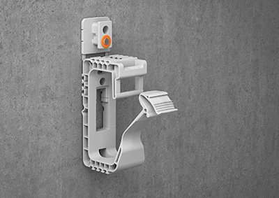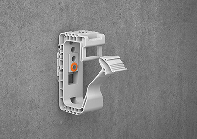 GRIP-kabelhållaren i plast är lämplig för allmänt bruk för vägg- och takmontage. Tack vare sina två fästhål kombinerar GRIP-kabelhållaren båda fästmöjligheterna: både konventionellt med pluggar eller skruvar och med inställningsverktyget. För direktinfästning kan GRIP-kabelhållarens gjutna fästelement placeras på inställningsverktygets huvud och fixeras automatiskt med speciella lameller. Den fästs direkt på väggen eller taket med en spikmaskin utan några extra verktyg. Rent, snabbt, okomplicerat och kan göras med bara en hand.