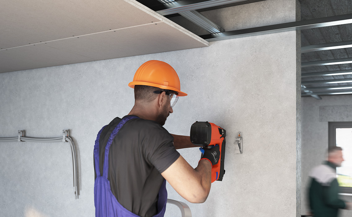 Slösa inte tid under dina installationer: Genom direktinfästning med ett inställningsverktyg sparar du inte bara tid och ansträngning under installationen, du slipper också mycket damm. Fördelarna med denna metod, som ger en snabbare installation, är uppenbara. Den omfattande OBO-produktportföljen erbjuder olika lösningar inom området anslutnings- och fästsystem som enkelt kan fästas direkt med hjälp av inställningsverktyg från olika tillverkare. Dessa inkluderar GRIP-kabelhållare samt kabelklämmor. Dessa kan fästas på olika underlag, som betong eller stål – i såväl nybyggnationer som i befintliga byggnader.