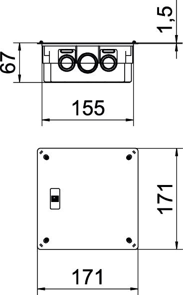 Antal införningar 24 Bestyckning utan Brandsäker installation / funktionsgaranti utan Brandsäkert enligt VDE 0471/DIN 695 del 2-1, kontrolltemperatur 650°C Bredd 150 mm CO2-avtryck (GWP) från vagga till grind 0,5375 kg CO₂e / 1 Styck Delar utan Dimension 150x150x65 Färg svart Form kvadratisk Golvhöjd min. 67 mm Halogenfri nej Höjd 65 mm införning bakifrån nej Införningar 24