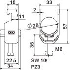 ProduktbeskrivningKabelhållare med U-fot, plastmellanlägg av polypropylen. För lodrät och vågrät montering av 1 enkel kabel på C-profilskena. För spårbredd 18-22 mm. Med 1-gängad skruv på tryckplåt, universellt sexkantsskruvhuvud storlek 10, med spår och krysspår. Avsedd för montering inomhus och utomhus. Användning av mothållsplåt rekommenderas.