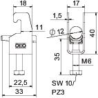 ProduktbeskrivningKabelhållare med U-fot, plastmellanlägg av polypropylen. För lodrät och vågrät montering av 1 enkel kabel på C-profilskena. För spårbredd 18-22 mm. Med 1-gängad skruv på tryckplåt, universellt sexkantsskruvhuvud storlek 10, med spår och krysspår. Avsedd för montering inomhus och utomhus. Användning av mothållsplåt rekommenderas.