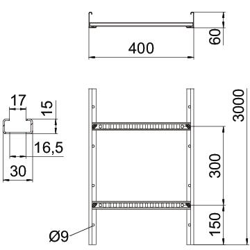 ProduktbeskrivningKabelstege med sidhöjd 60 mm med svetsade C30 profilpinnar öppna uppåt. Inbockad sidogavel som förstärkning och som kantskydd. Fastsättning på konsolen sker med skarvbeslag typ LKS 40. Stegpinnens slitsmått är 16,5 mm, och den passande kabelhållaren är av typen BS-H....