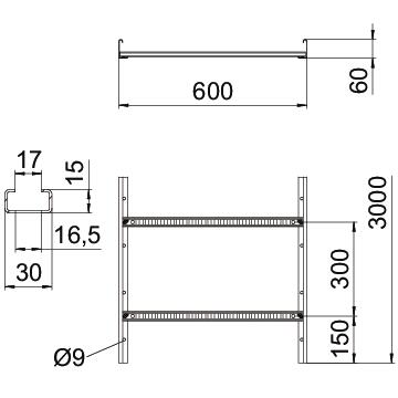 ProduktbeskrivningKabelstege med sidhöjd 60 mm med svetsade C30 profilpinnar öppna uppåt. Inbockad sidogavel som förstärkning och som kantskydd. Fastsättning på konsolen sker med skarvbeslag typ LKS 40. Stegpinnens slitsmått är 16,5 mm, och den passande kabelhållaren är av typen BS-H....