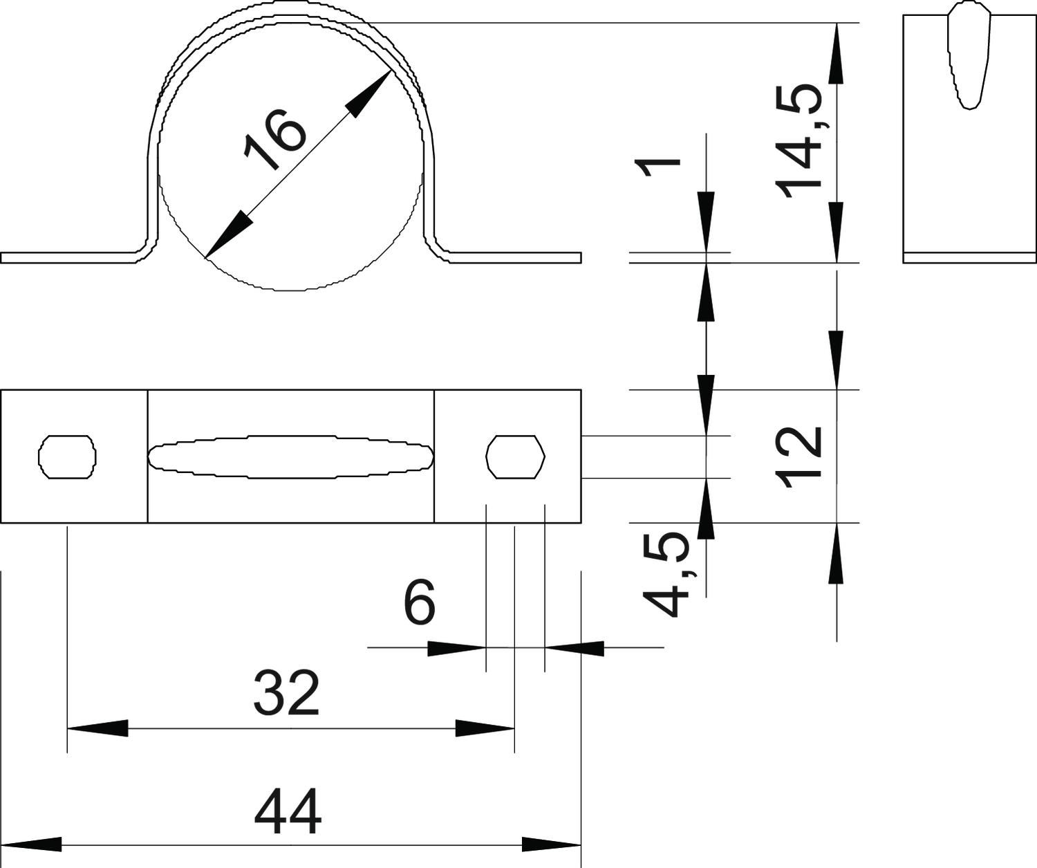 Antal kablar/rör 1 Avsedd för brandskyddsområde nej Avstånd till vägg nej Bredd 12 mm CO2-avtryck (GWP) från vagga till grind 0,0371 kg CO2e / 1 Styck Dimension 16mm fastsättningstyp Skruvhål för diameter 16 Halogenfri ja Hålstorlek 4,5 x 6 Höjd 14,5 mm Längd 44 mm Material Aluminium Materialtjocklek 1 mm Mått A 44 mm Mått B 32 mm Mått b 12 mm Mått d 4,5 mm Mått D 16 mm Mått e 6 mm Mått H 14,5 mm Mått t 1 mm Nominell diameter 16 mm Plastbeklädd nej Spännvidd D max. 16 mm Spännvidd D min. 16 mm Utförande tvåflikig UV-beständig ja - Alla typer