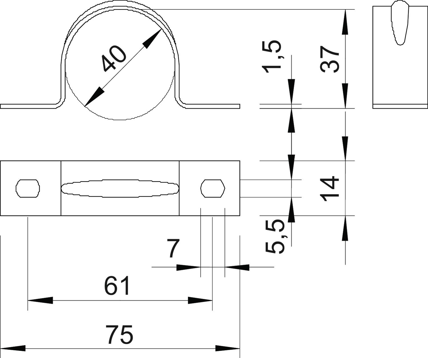 ProduktbeskrivningKlammer tvåflikig 40mm