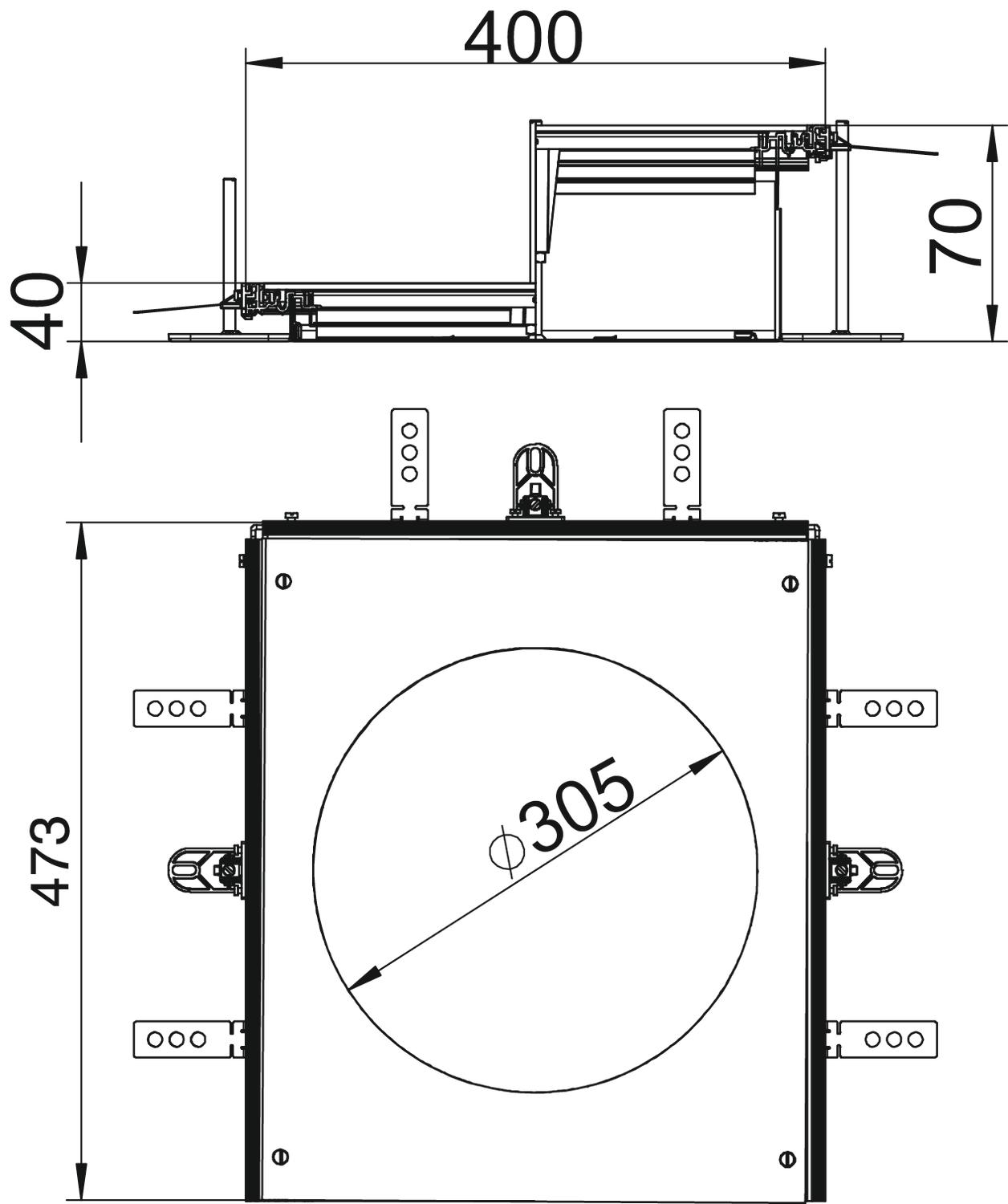 Monteringsöppningens storlek är avsedd för montering av en rund monteringsenhet med nominell storlek R9/55.