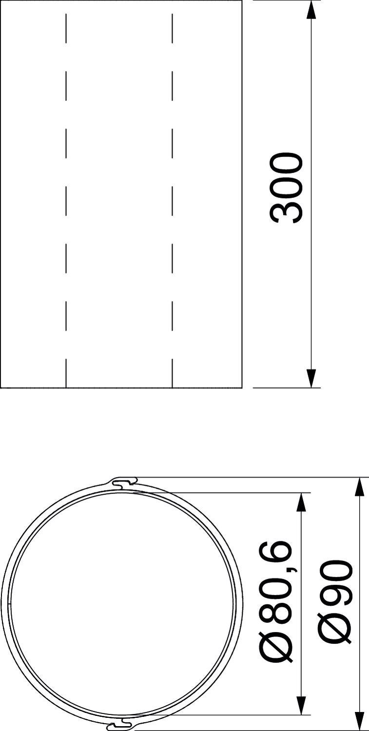 Diameter 90 mm Dimension 81x300mm Färg grå för öppning max. 100 mm för öppning min. 100 mm Form rund Längd 300 mm Material Polyvinylklorid Mått B 90 mm Mått D min. 80,6 mm Mått L 300 mm Tillbehör krävs nej Utförande brandskydd Monteringsfärdigt skott - Alla typer
