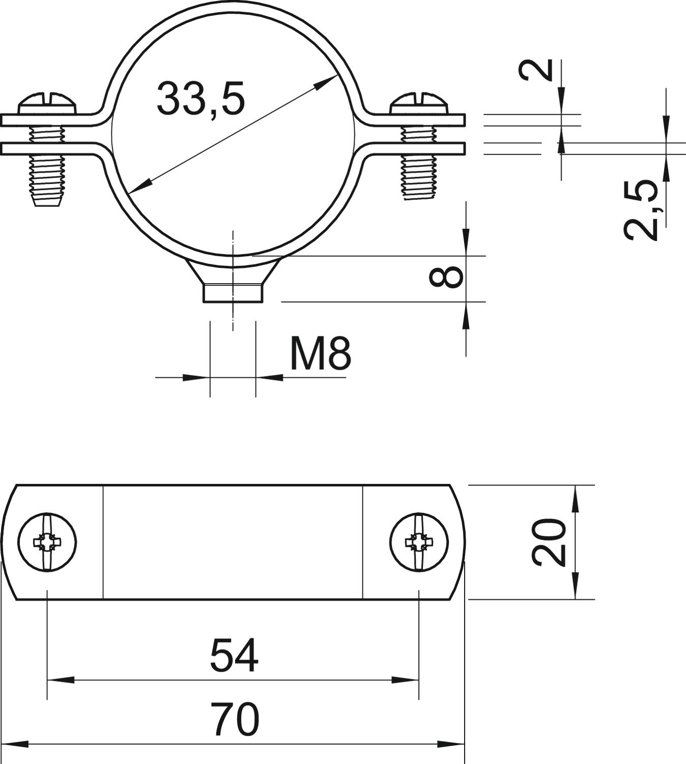Avsedd för brandskyddsområde nej Bredd 20 mm CO2-avtryck (GWP) från vagga till grind 0,1565 kg CO2e / 1 Styck Dimension 1" fastsättningstyp Skruvhål för diameter 33,5 för rördiameter M32 Gänga M8 Halogenfri nej Hålstorlek M8 Längd 70 mm Material Stål Materialtjocklek 2 mm Mått A 70 mm Mått B 54 mm Mått D 33,5 mm Mått D min. 33,5 mm Mått t 2 mm Mått t1 (mm) 2,5 Mått x 3 mm Plastbeklädd nej Skruv M6 x 16 Spännvidd D max. 33,5 mm Spännvidd D min. 30,5 mm Storlek 1" Utförande sluten UV-beständig ja Yta varmförzinkad - Alla typer