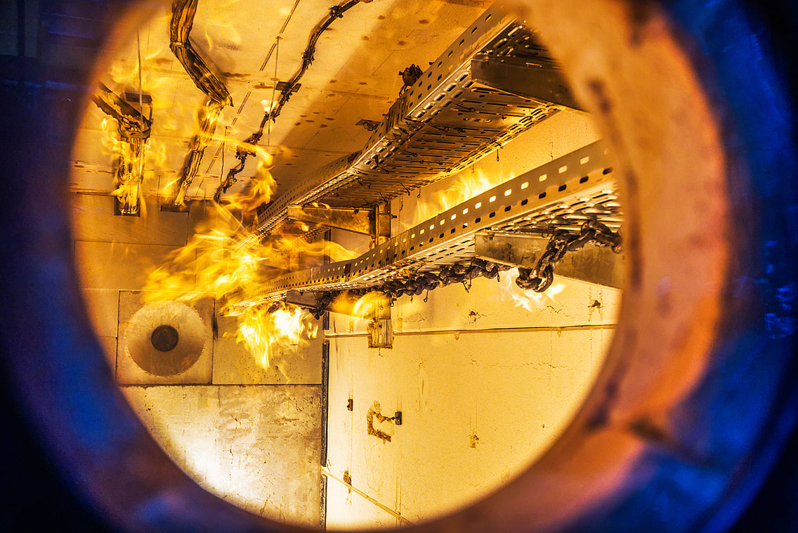 Då måste det garanteras att säkerhetsrelaterade elinstallationer kan försörjas även under en brand. Sådana installationer – brandskyddskanaler eller kabelförläggningssystem – kontrolleras och bedöms med DIN 4102 del 12 som grund. Under brandprovet får inga elektriska kortslutningar eller ledningsbrott uppstå.