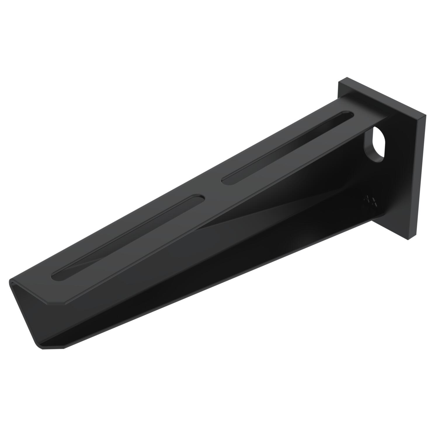ProduktbeskrivningMedium-duty wall and support bracket with welded head plate. Black coated.
