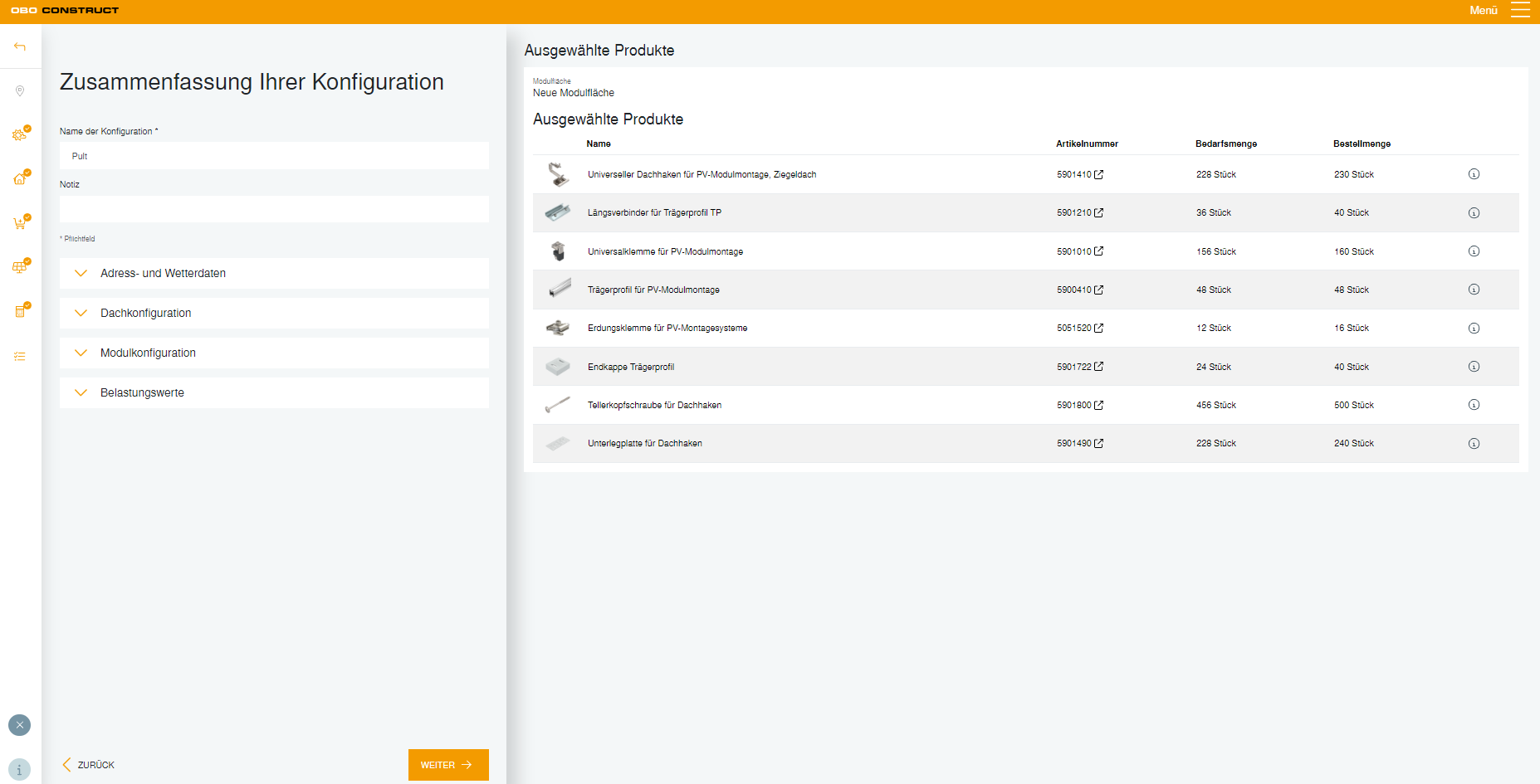 Upptäck framtiden för solpanelsplaneringDet har aldrig varit enklare att planera solpanelsmonteringssystem: OBO Construct Tool för Magic PV Solution gör det möjligt. Planeringsverktyget imponerar med sin intuitiva, tydliga användarvänlighet och korta planeringsprocesser. Du tas steg för steg till lämpligt solpanelsmonteringssystem från OBO – helt efter dina krav och önskemål.